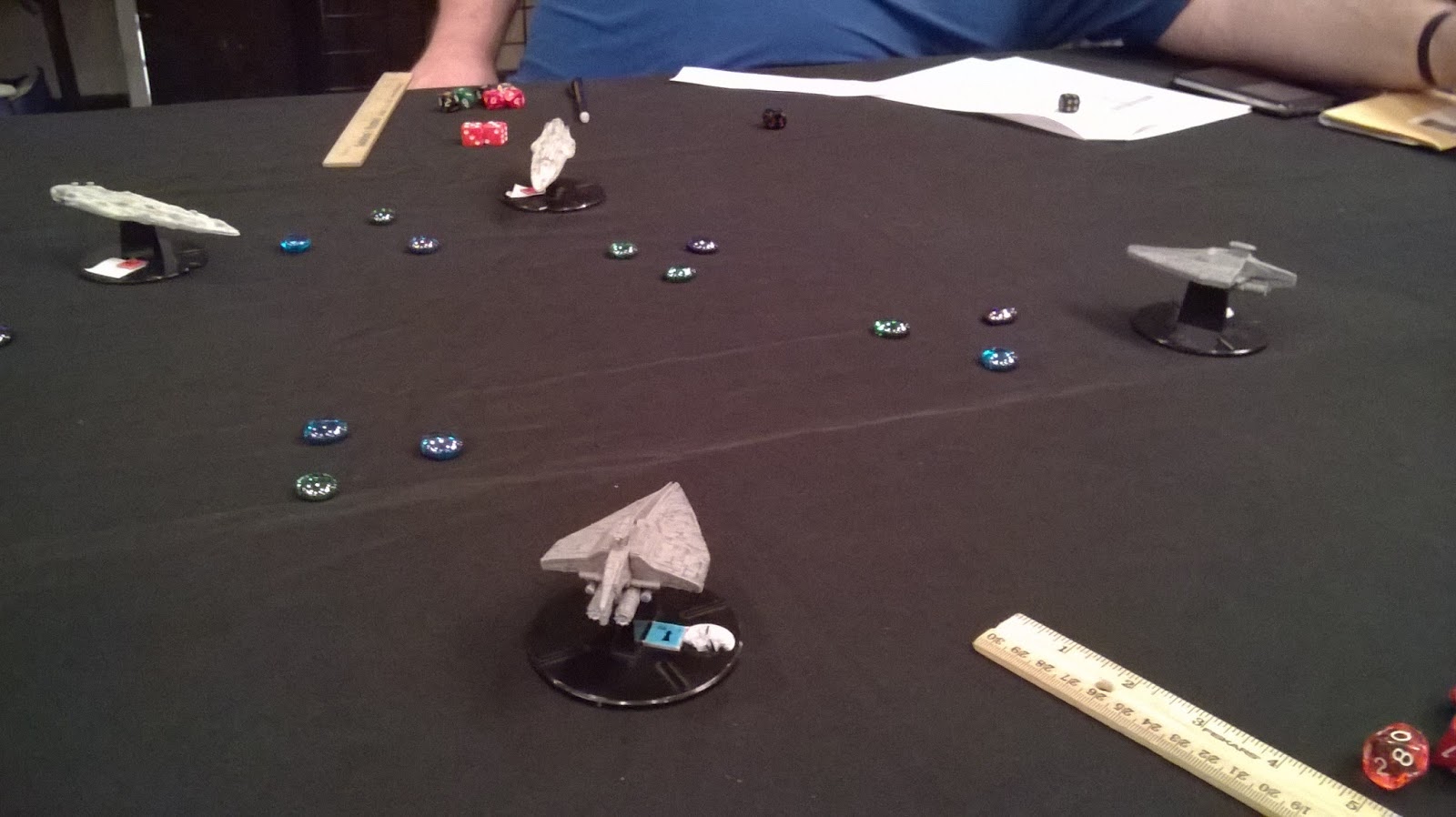 Friday night gaming - Mike broke out Starfire and we blew up spaceships for a couple hours.