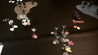 Christian Jr was the big winner on the Alliance side - FOUR kills and a ten-point objective. Yup, he managed four kills with just five ships. Ziggy managed two kills and a 15-point objective. Mark and I scored only objectives - no kills, but I did rather well with 45 total points. Mike/Jason got 79 points, easily enough for an individual win, but the Allies won the scenario.